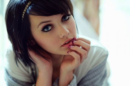 Портрет голубоглазой брюнетки с пирсингом