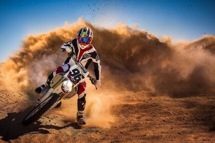 МОТОЦИКЛИСТ ПУСКАЕТ ПЫЛЬ НА СОРЕВНОВАНИИ