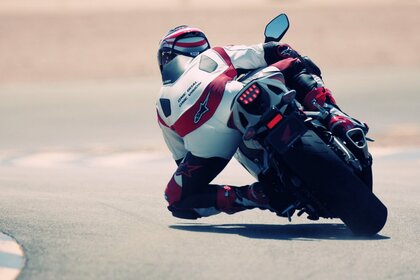 МОТОЦИКЛИСТ ВХОДИТ В КРУТОЙ ПОВОРОТ
