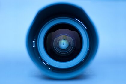 Синий объектив смотрит на камеру