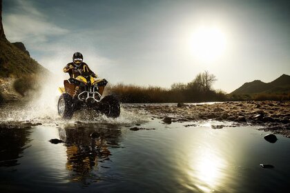 Байкер катается на квадроцикле