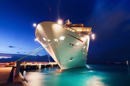 Круизный лайнер у причала океана