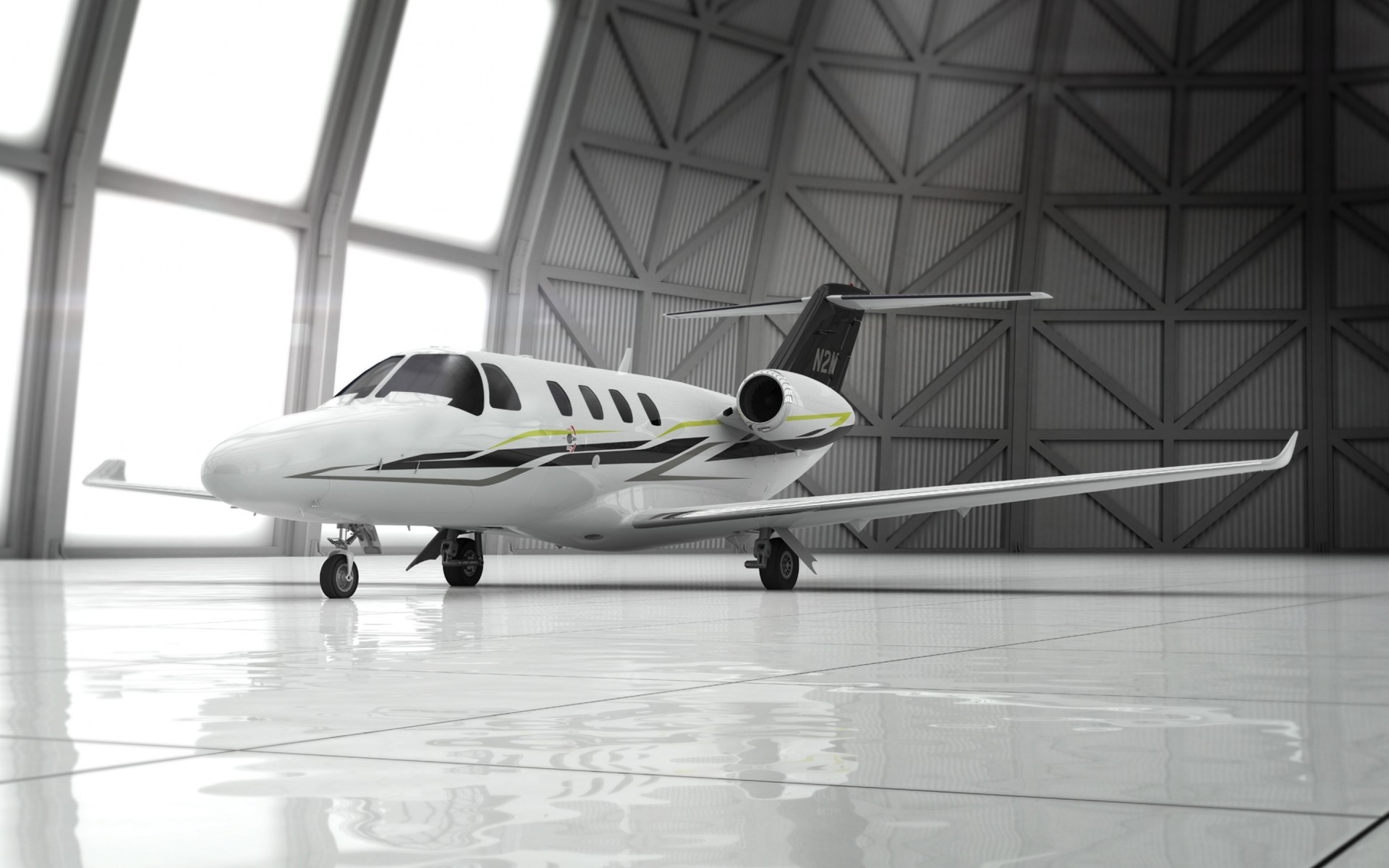 Самолет в ангаре, серые тона - обои на рабочий стол