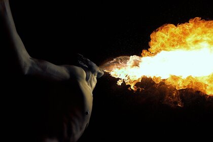Дыхание человека огнем на черном фоне