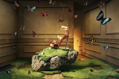 Туфли от кутюр в окружении бабочек