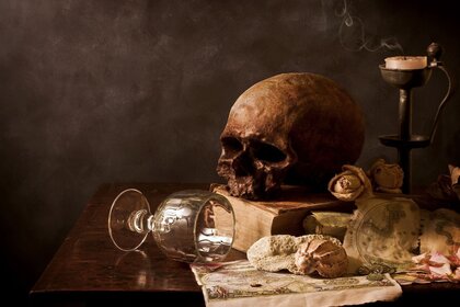 Натюрморт на столе с черепом