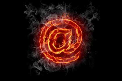 Огненный значок собачка на черном фоне