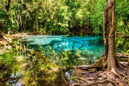 Озеро с прозрачной водой в лесу