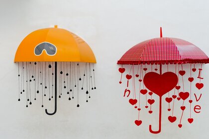 Весëлые зонтики на светлом фоне