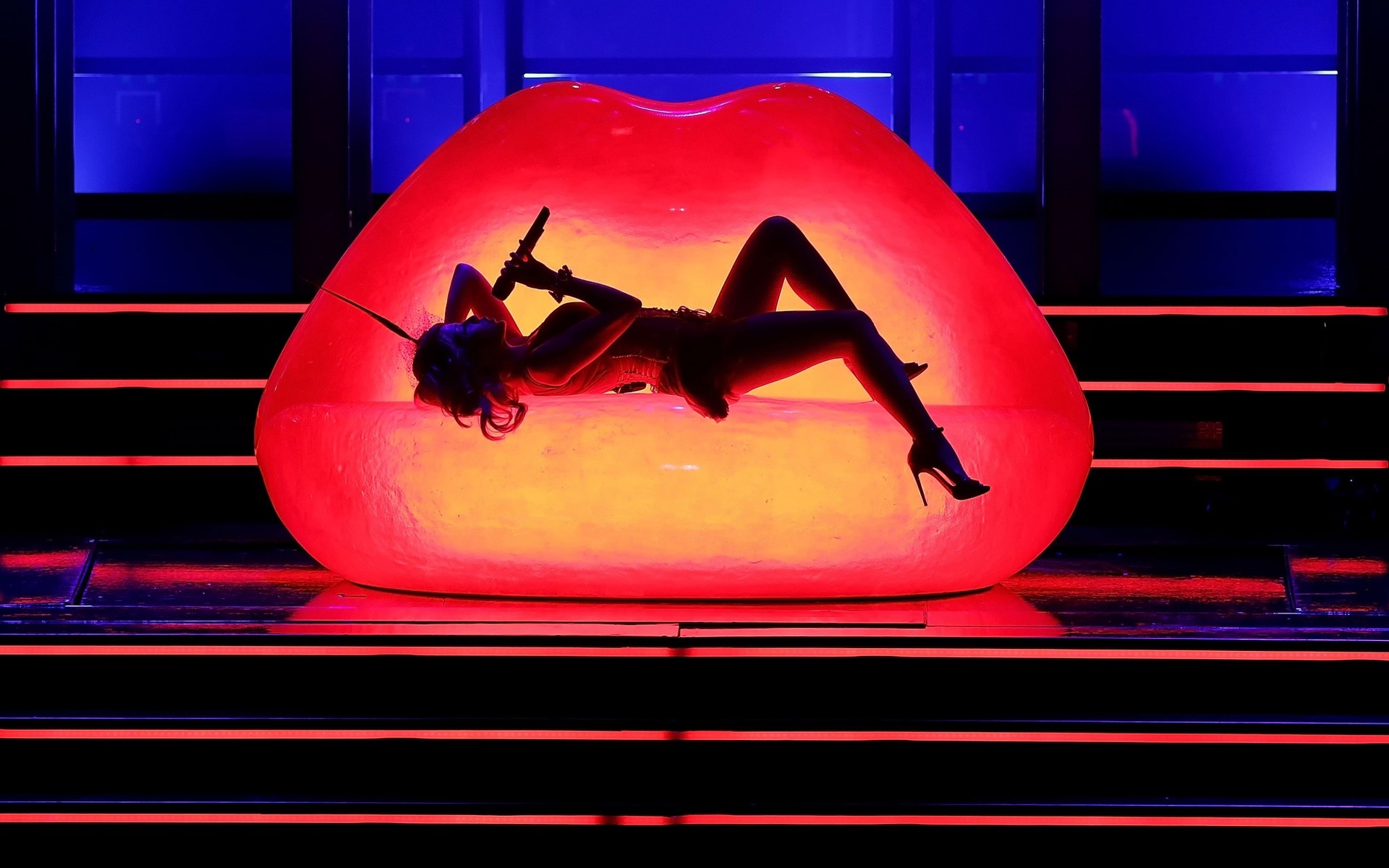 Сексуальная певица поет свою песню на сцене - обои на телефон