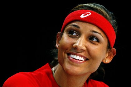 Улыбающаяся спортивная девушка в красном