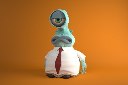 Пластилиновый монстрик в одним глазом на оранжевом фоне