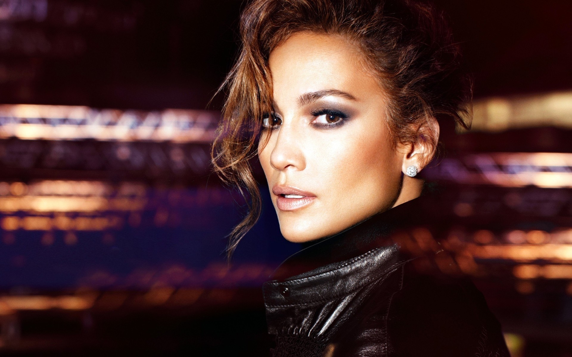 Дженнифер Лопес на размытом цветном фоне