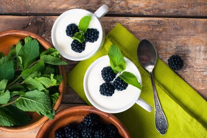 Ягоды ежевики и листьями мяты в кружках