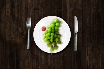 Завтрак вегетарианца. Полезная пища. Виноград на тарелке