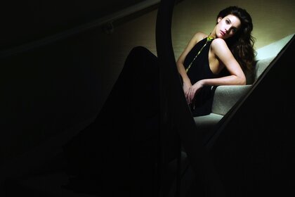 Женщина в платье сидит в кресле