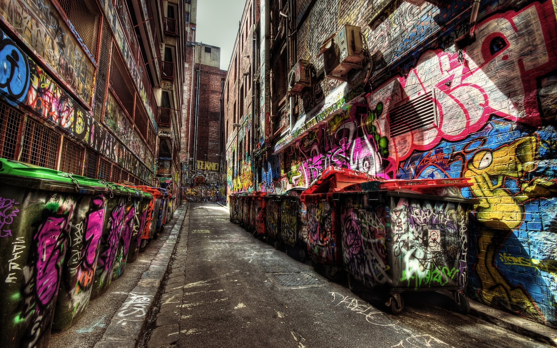 Уличная галерея граффити в мегаполисе - обои на рабочий стол