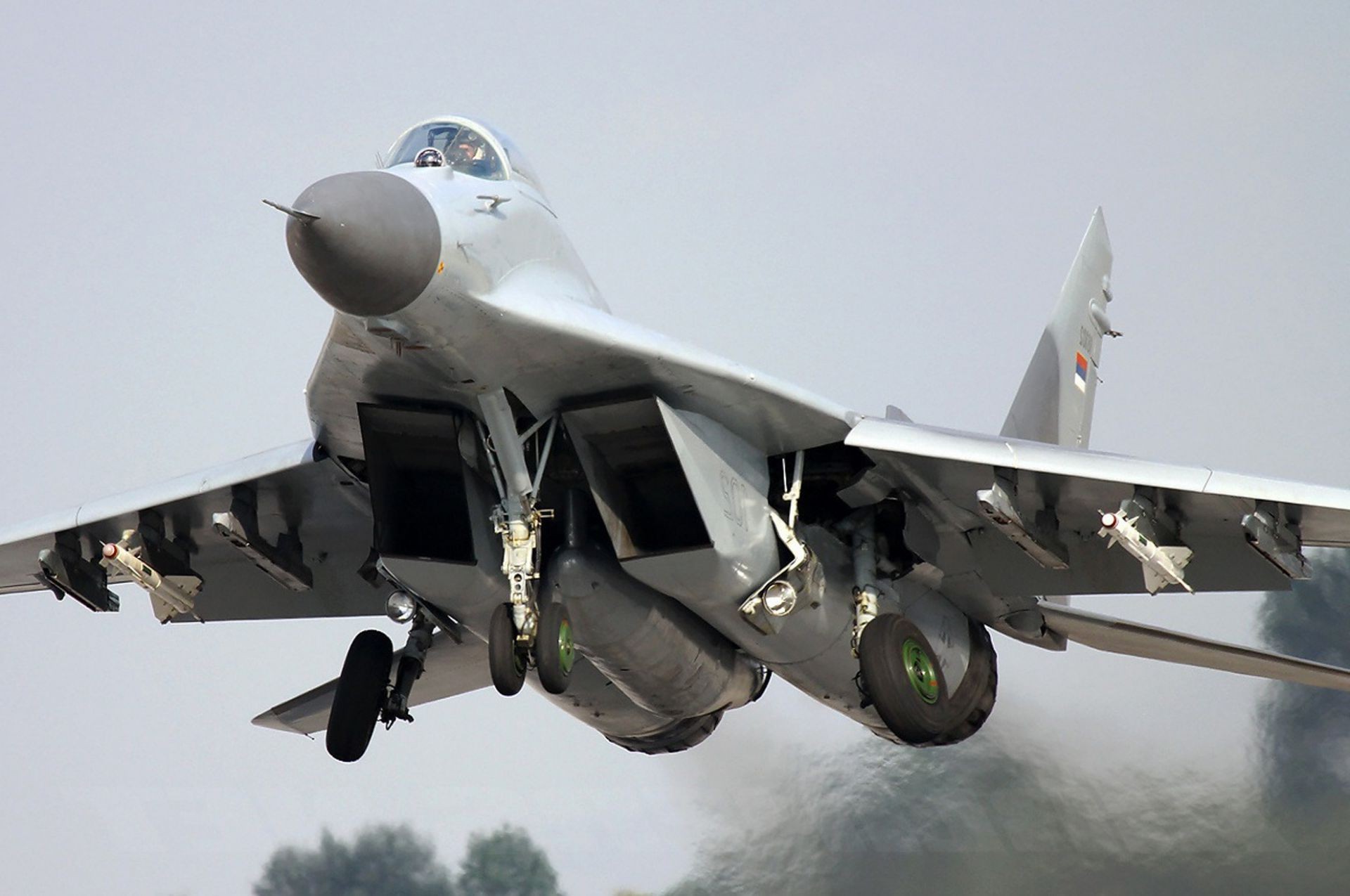 Военный истребитель идёт на взлёт - обои на рабочий стол