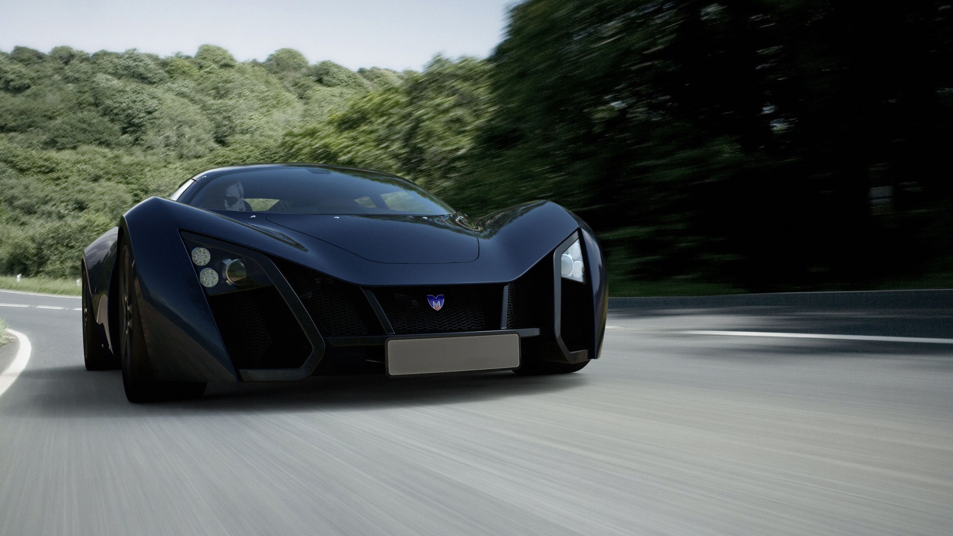Черный спортивный автомобиль на скорости - обои на рабочий стол