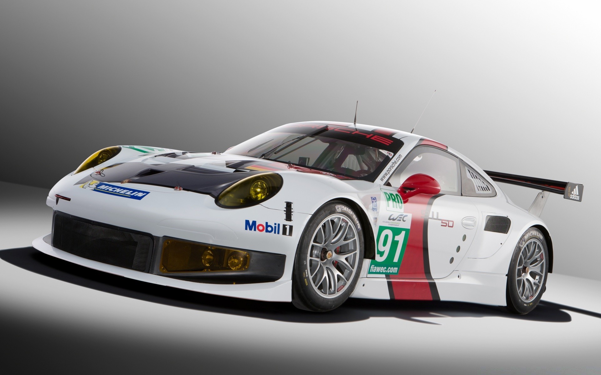 Фото спортивного болида в рекламе на сером фоне - обои на рабочий стол