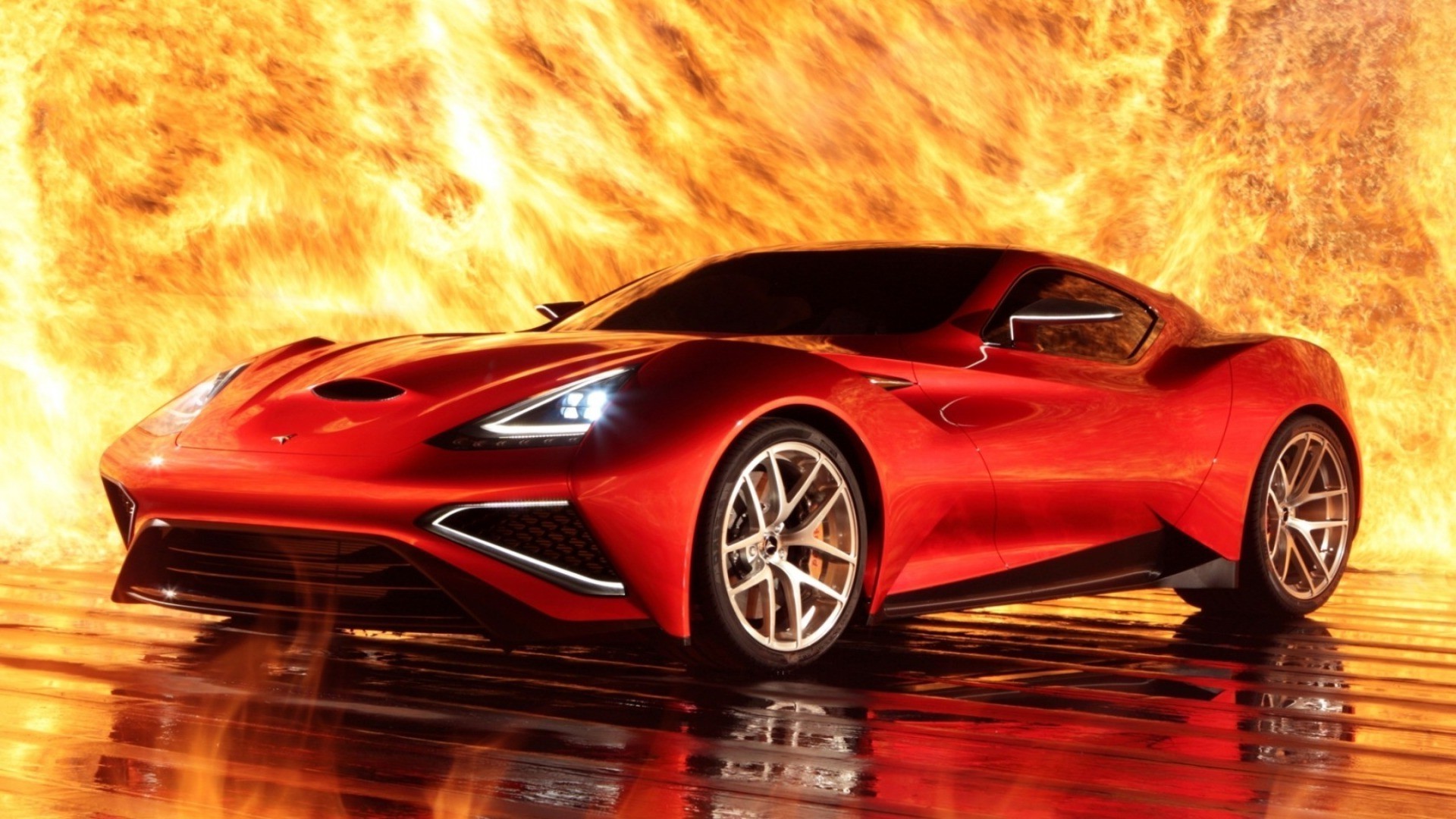 Спортивный автомобиль в огненной ловушке - обои на рабочий стол