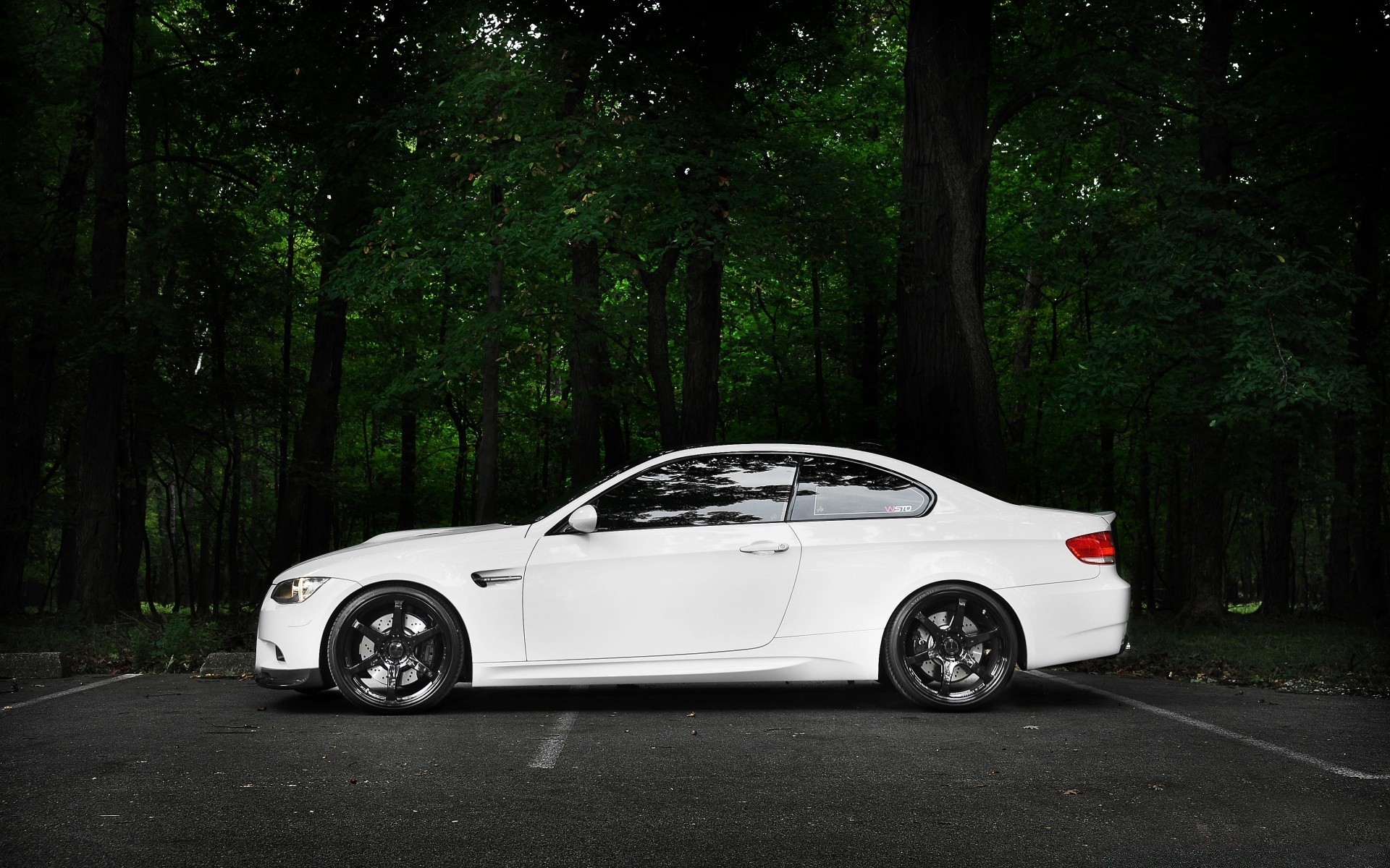 Белый автомобиль на фоне зелёного леса - обои на телефон