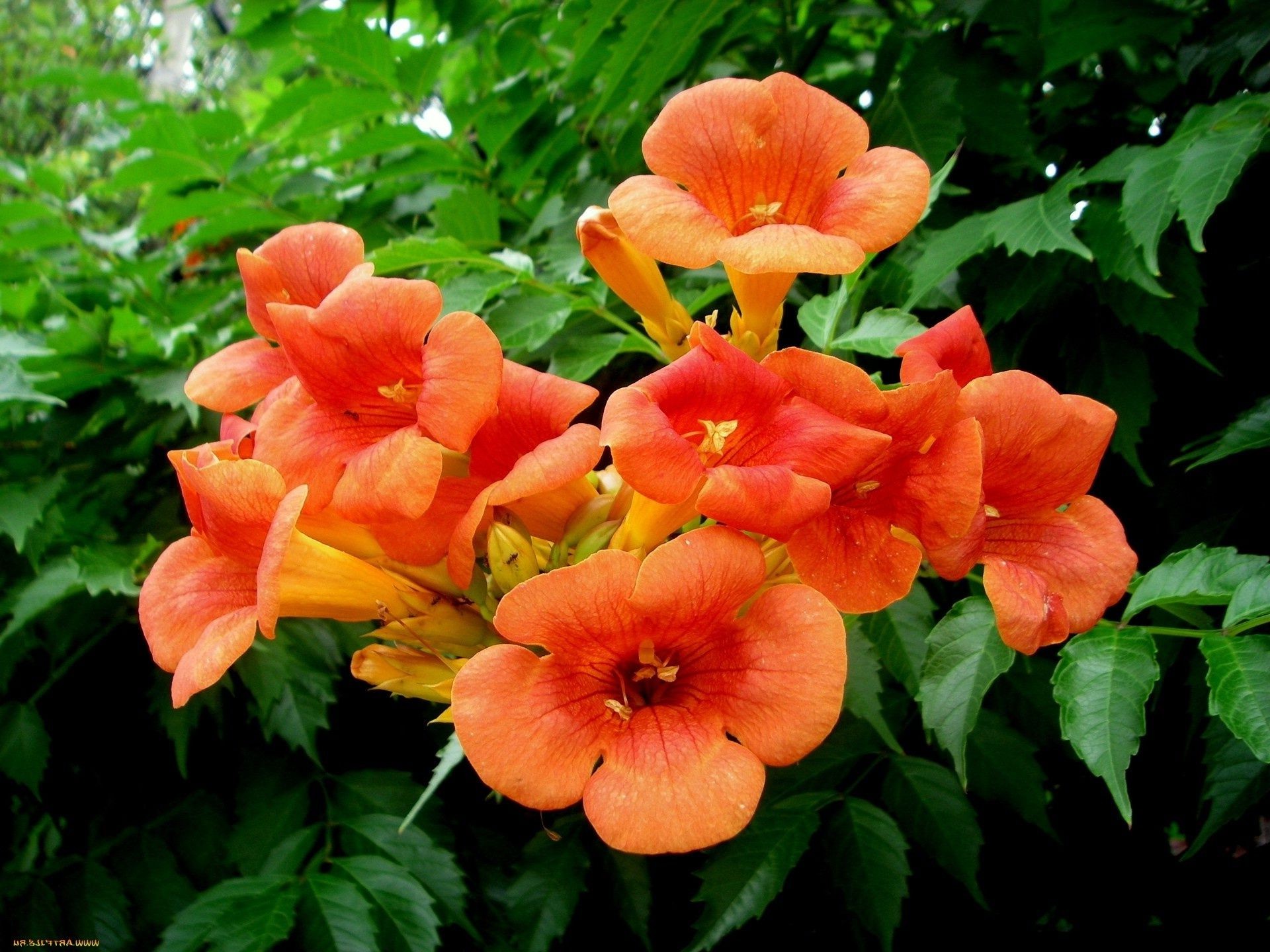 Ветка оранжевых цветов на дереве - обои на рабочий стол
