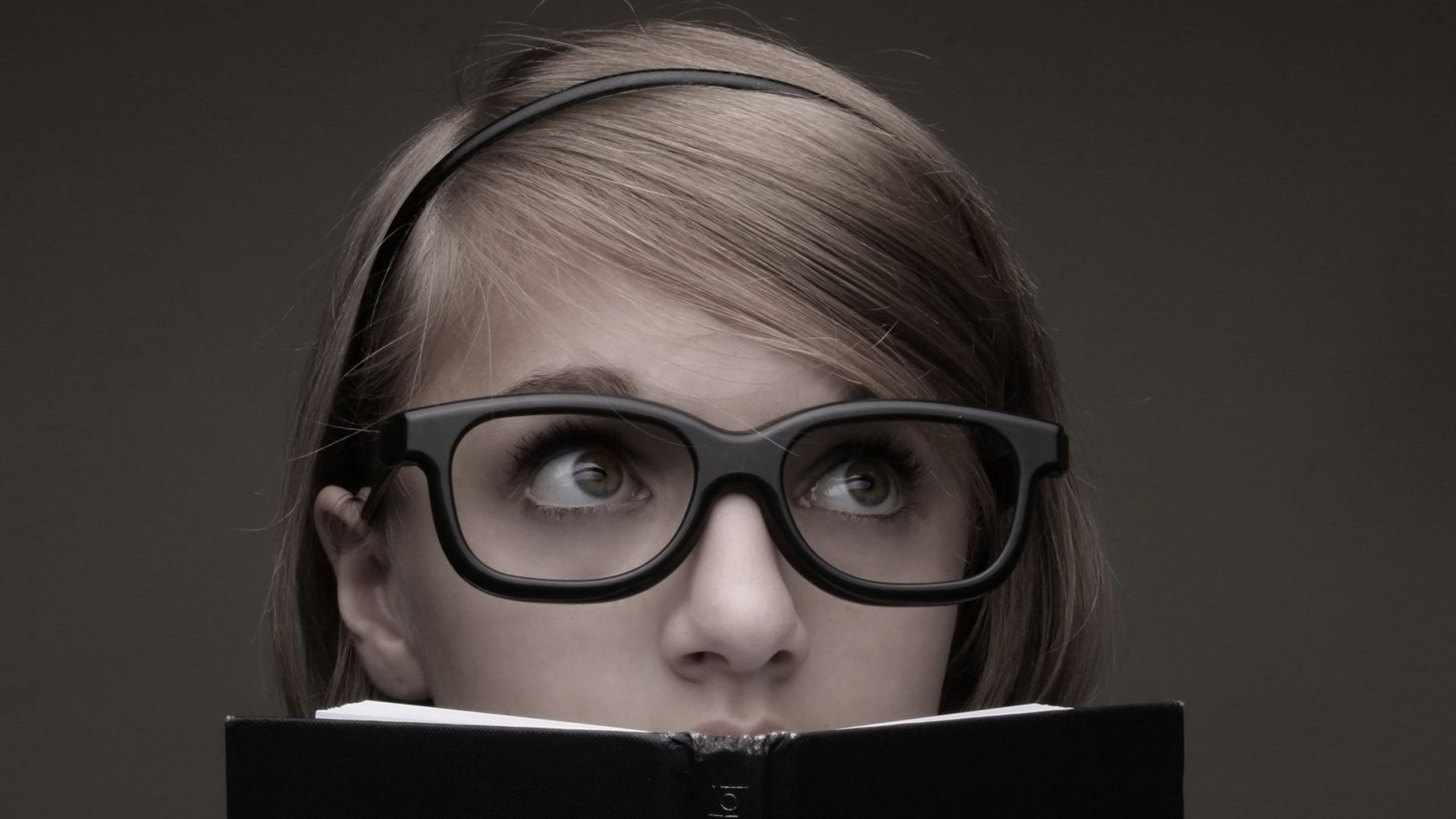 Фото девушки в очках, держащей в руках книгу - обои на телефон