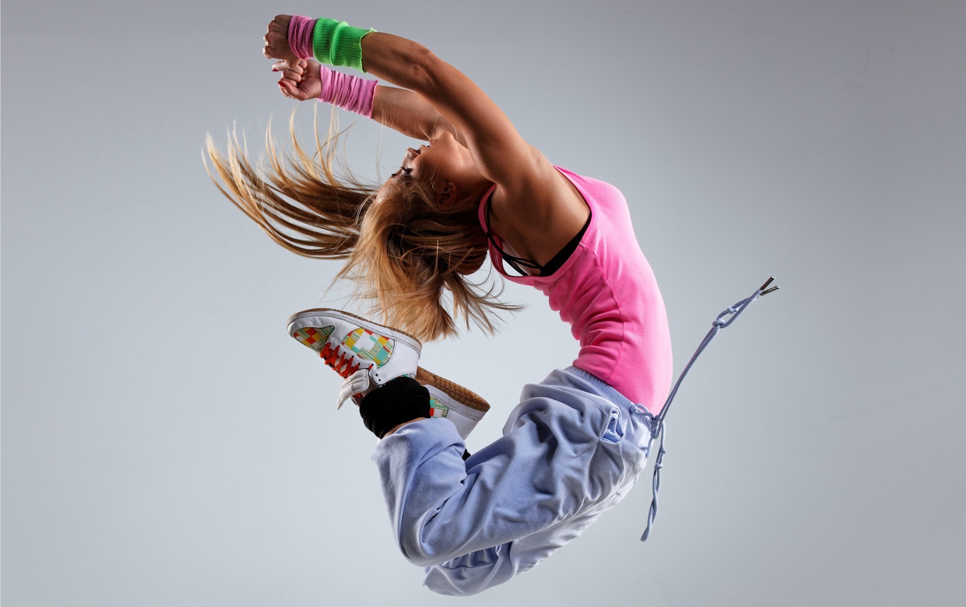 Танцор выполняет прыжок в воздухе поджав ноги к попе - обои на рабочий стол
