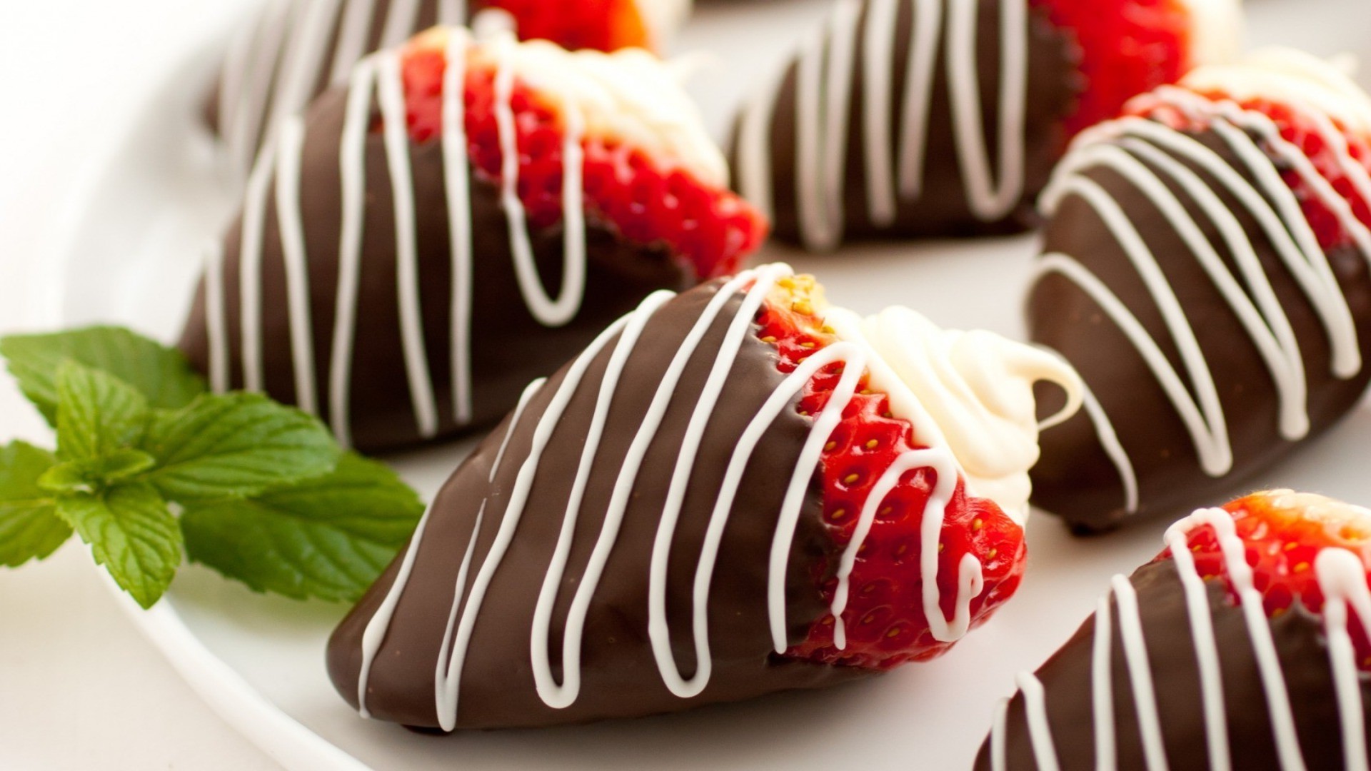 Вкусные десерты с шоколадом и ягодами - обои на рабочий стол