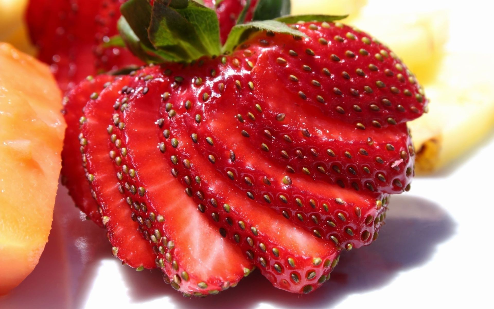 Ярко-красная разрезанная клубника - обои на рабочий стол