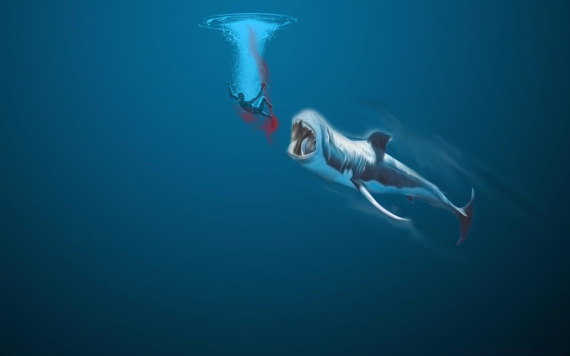 Злая акула хочет съесть свою жертву - обои на рабочий стол