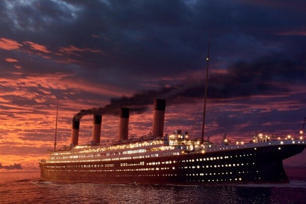 Путешествие на огромном лайнере с видом заката