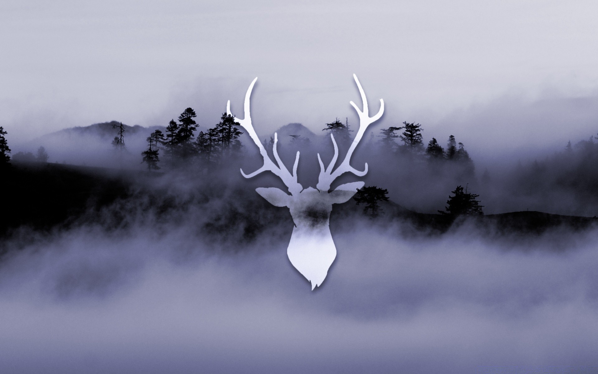 Изготовление оленя на фоне леса в тумане - обои на рабочий стол