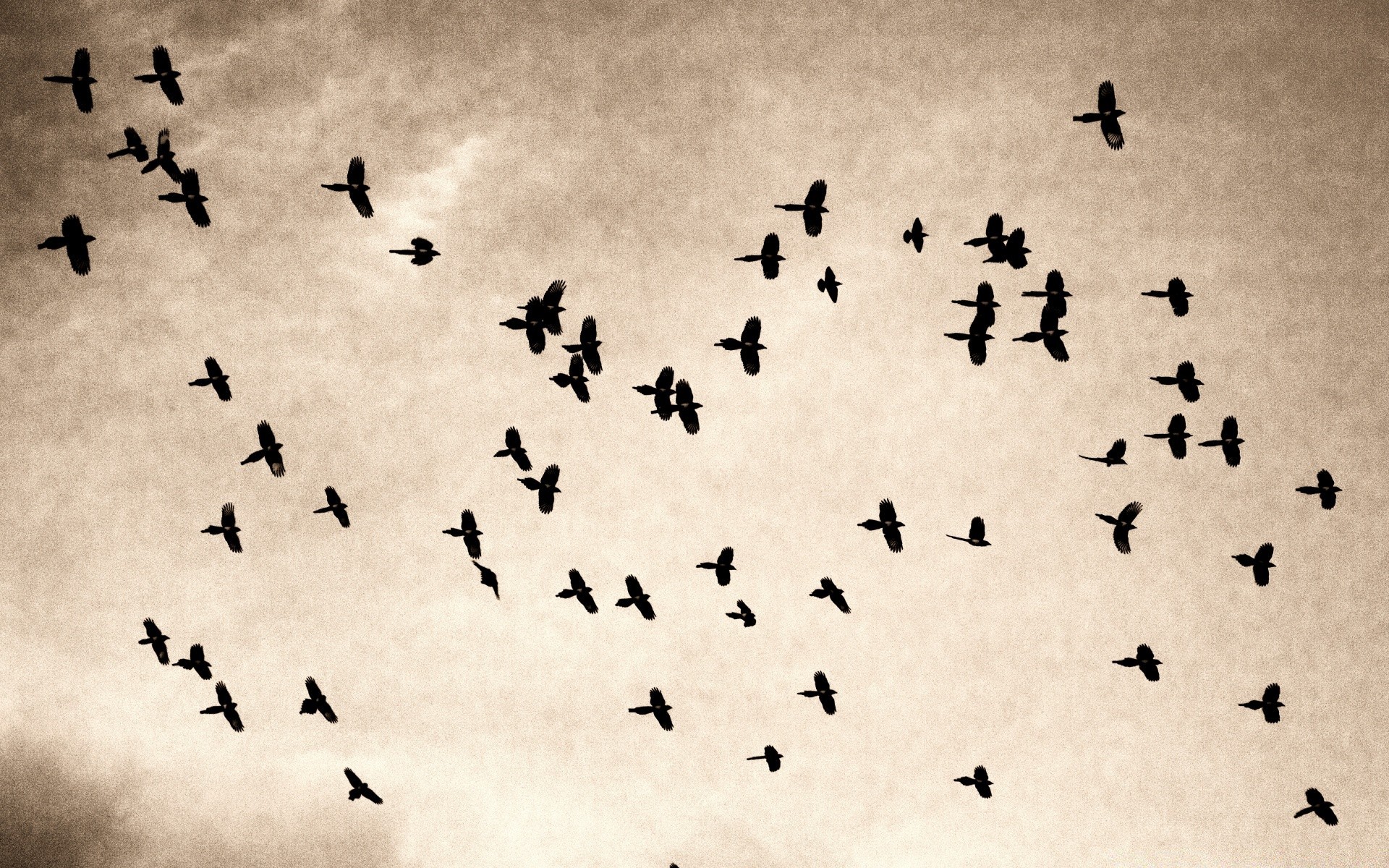 Большая стая птиц. Винтаж - обои на телефон