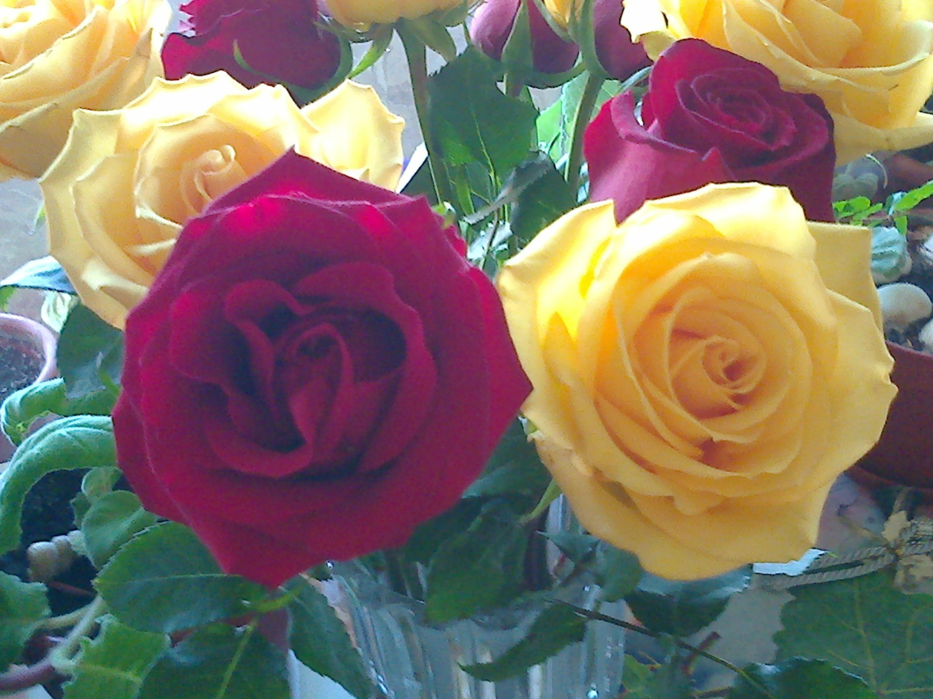 Яркий букет из красно желтых роз - обои на рабочий стол