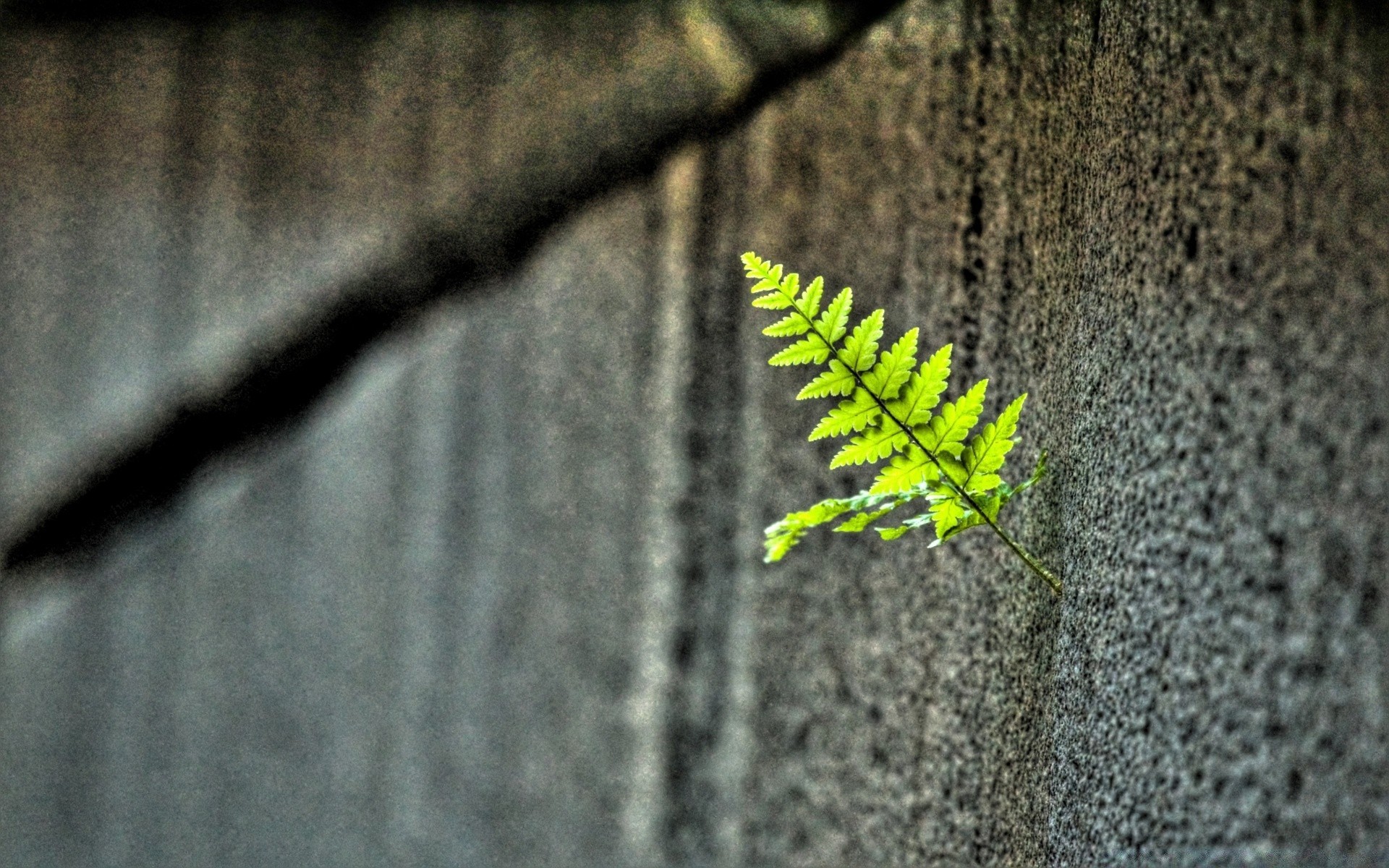 Листочек, похожий на ёлку, вырос на древесине - обои на рабочий стол
