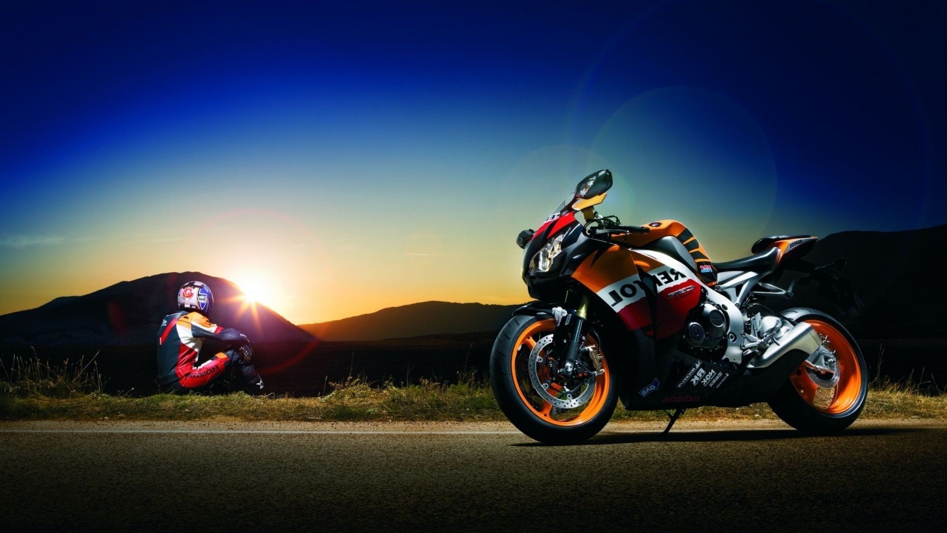 Спорт-байк и рядом с ним гонщик - обои на рабочий стол