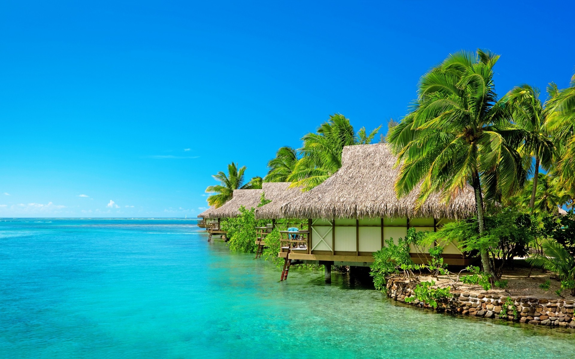 Экзотические бунгало вдающиеся в море - обои на рабочий стол