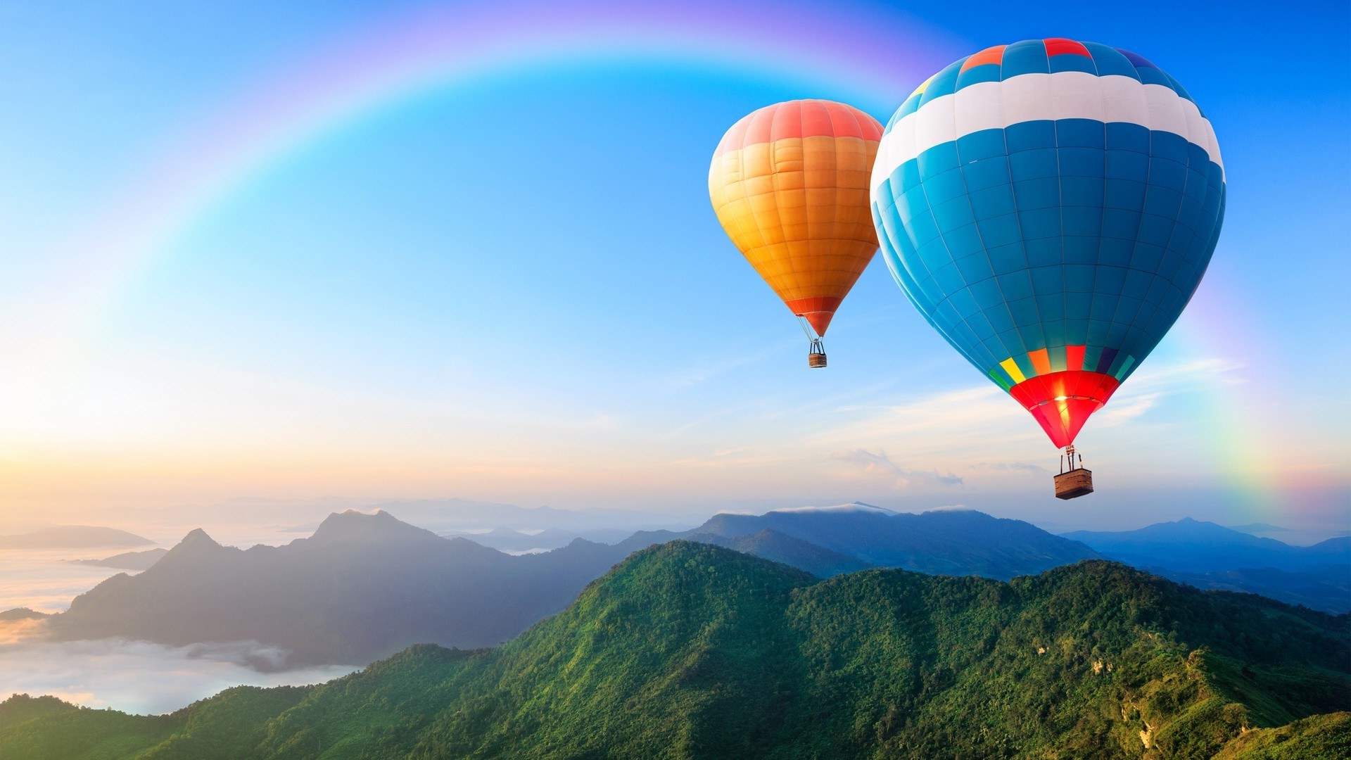 радуга горы путешествия приключения небо пейзаж воздушный шар высокая долина воздуха на открытом воздухе природа отдых горячая-воздушный шар