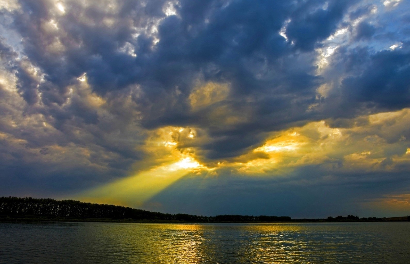 Солнечный луч пробивается сквозь облака - обои на рабочий стол
