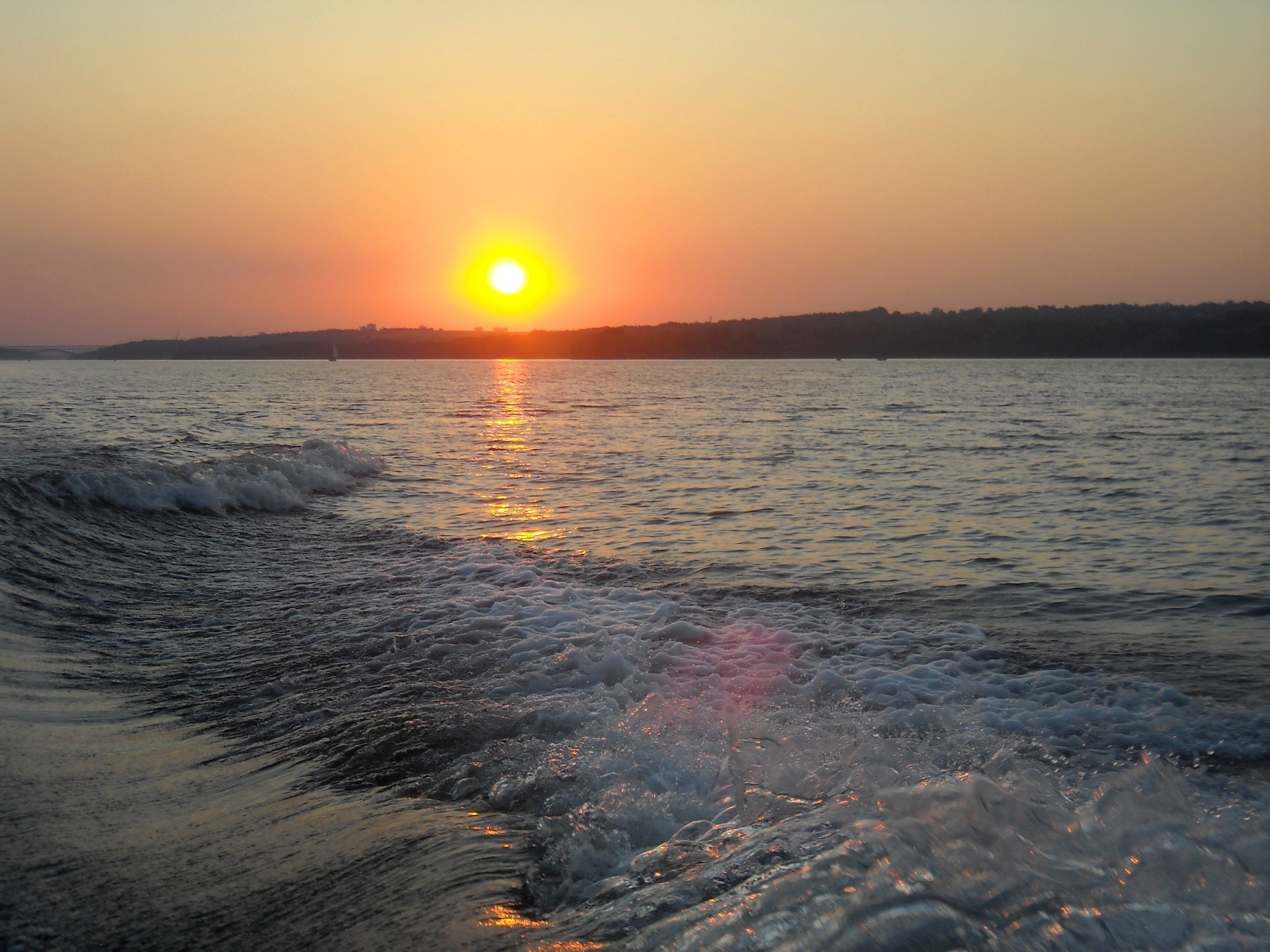 Закат на воде с моторной лодки - обои на рабочий стол