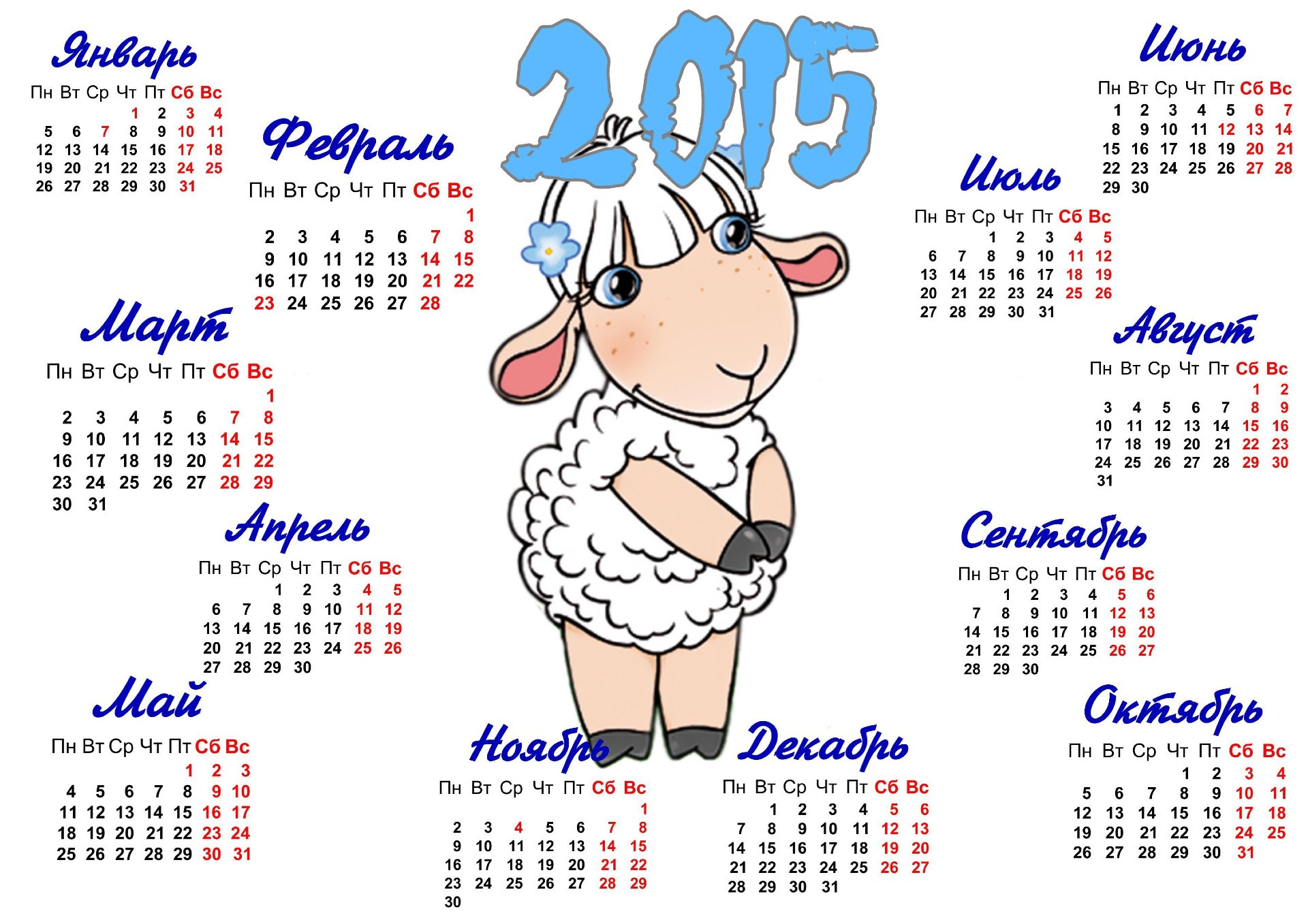 Милая и невинная белая овечка с короткой шерсткой. Календарь - обои на рабочий стол