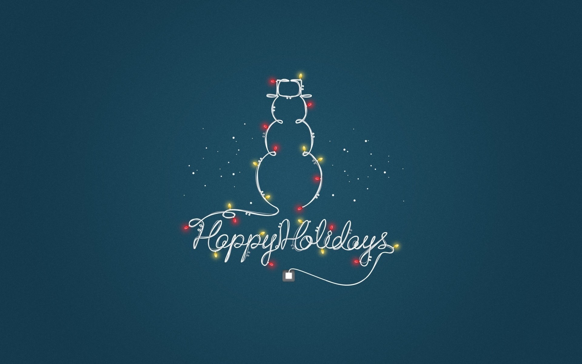 Выложенный из герлянды снеговик со светящийся надписью счастье - обои на рабочий стол