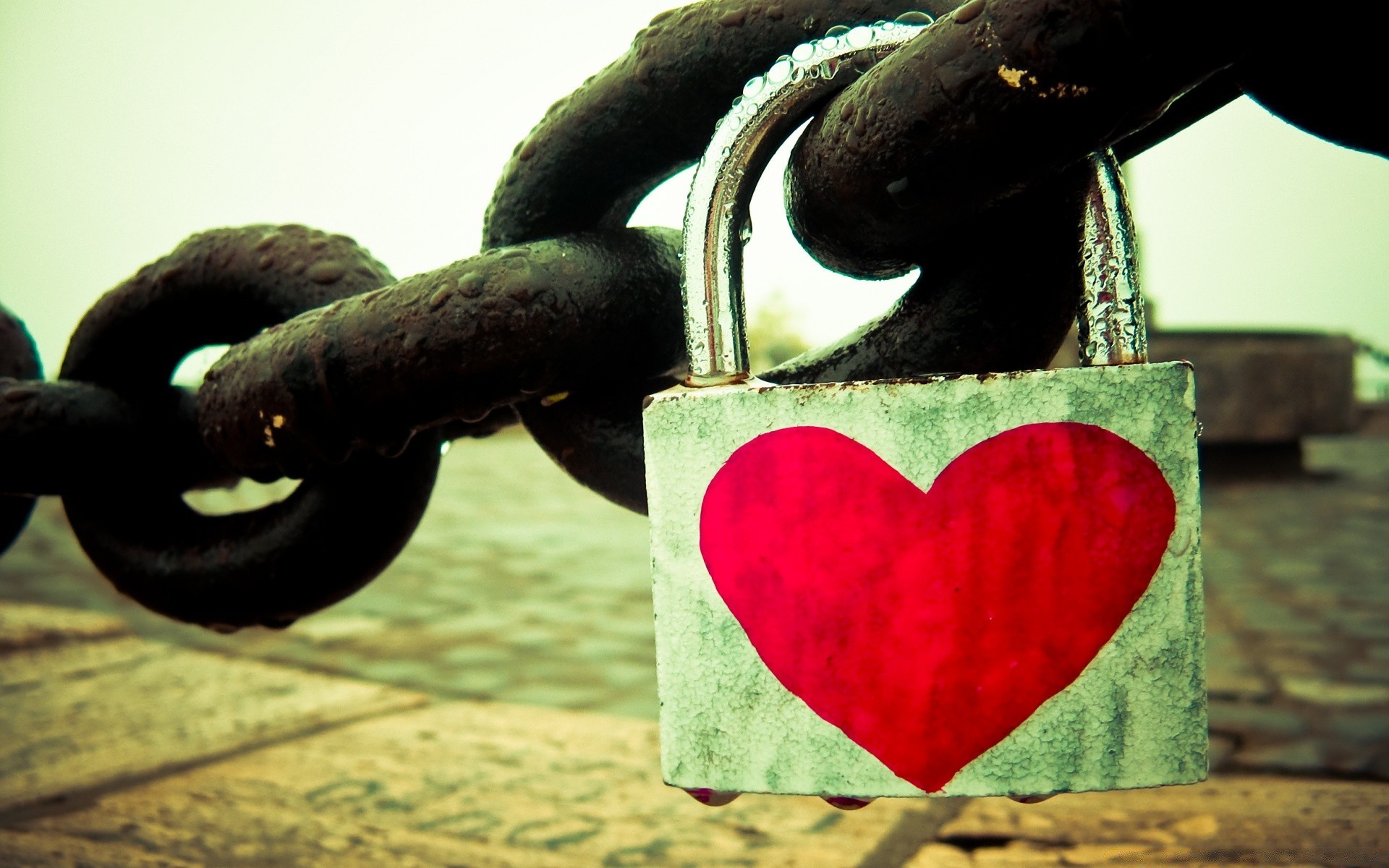 Замок с красным сердечком на цепи - обои на рабочий стол