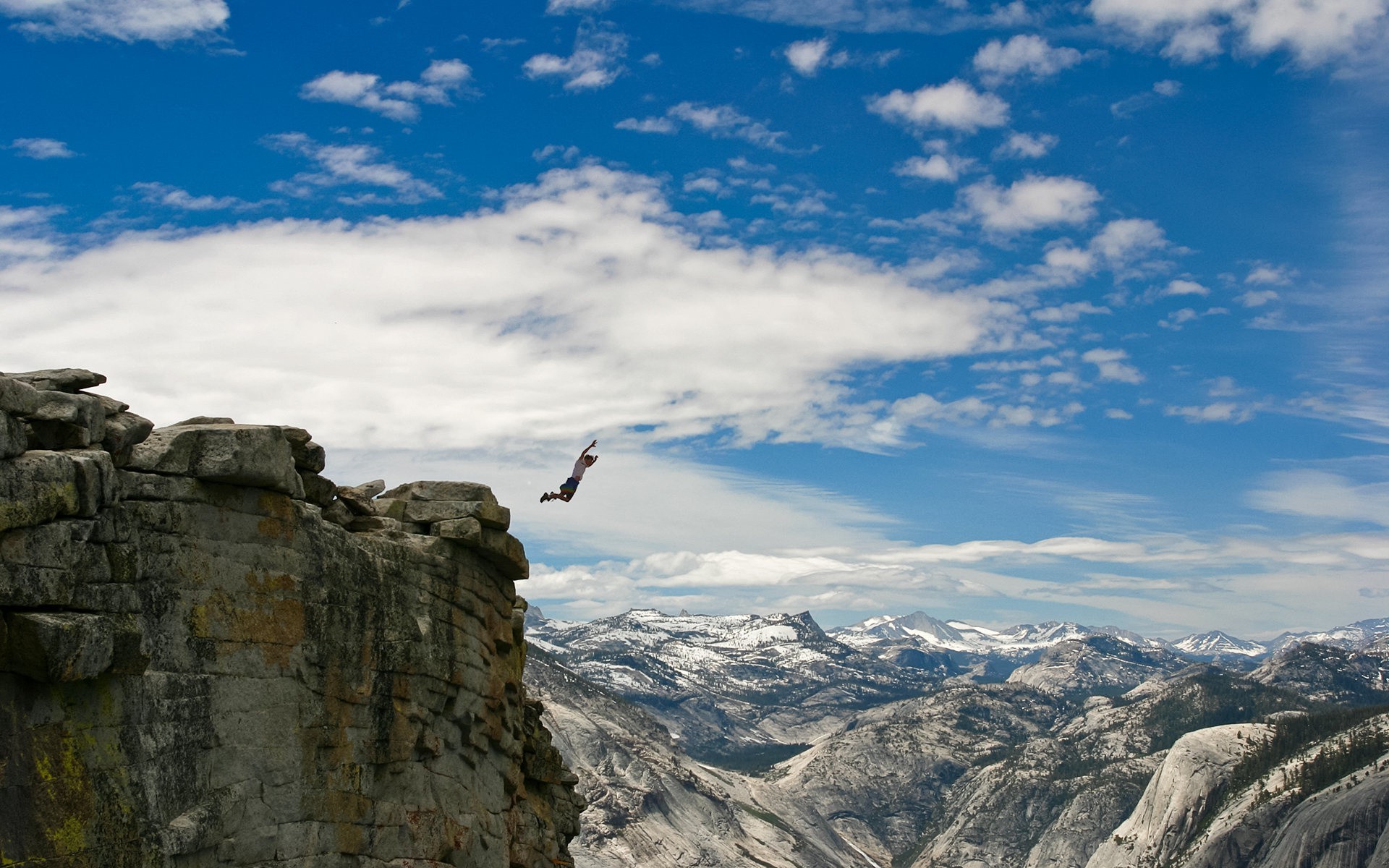 Спортсмен прыгает с огромной скалы вниз - обои на телефон