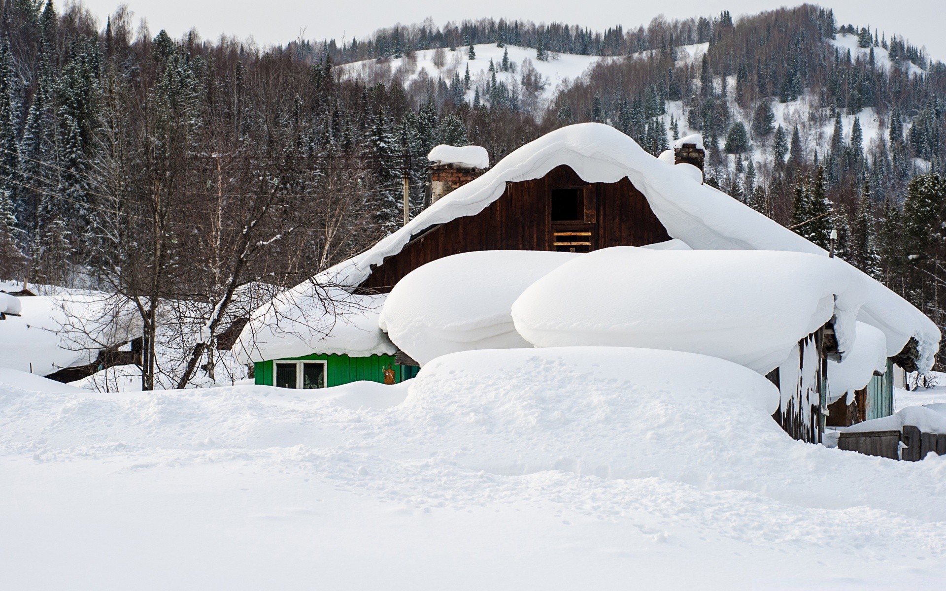 Домик завенный под снежным сугробом - обои на рабочий стол