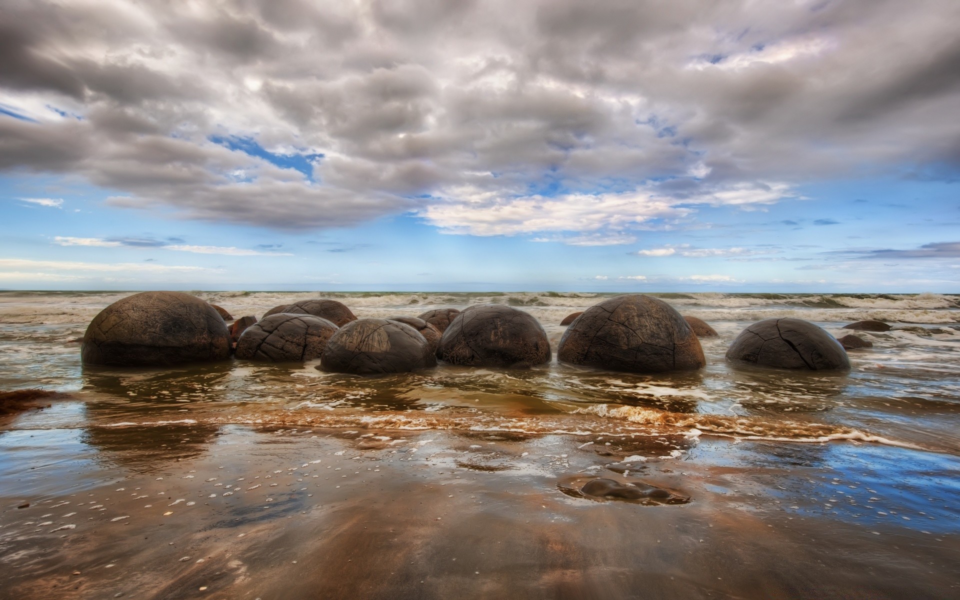 Камни лежащие на песочном пляже - обои на рабочий стол
