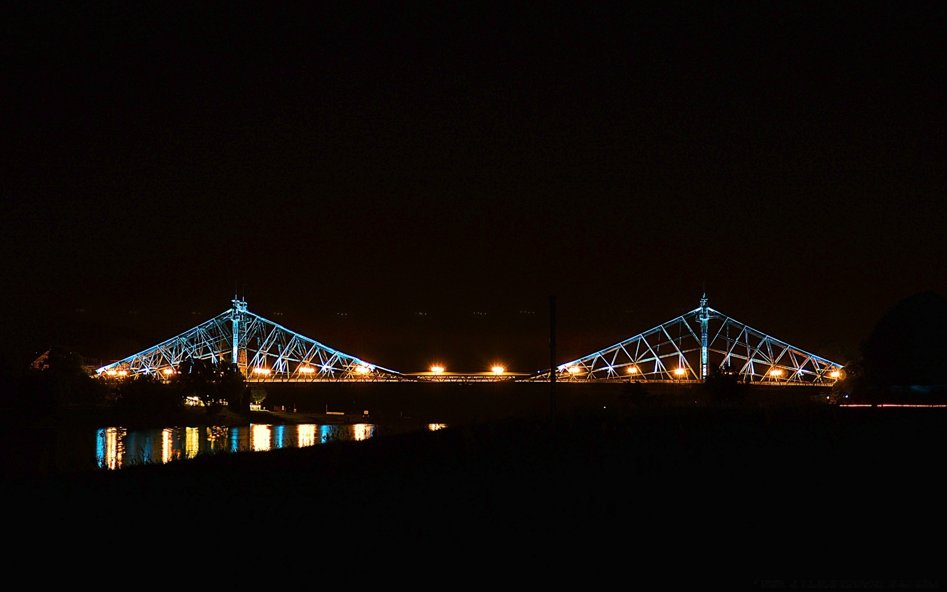 Свет моста в ночи и его отблеск в воде - обои на рабочий стол