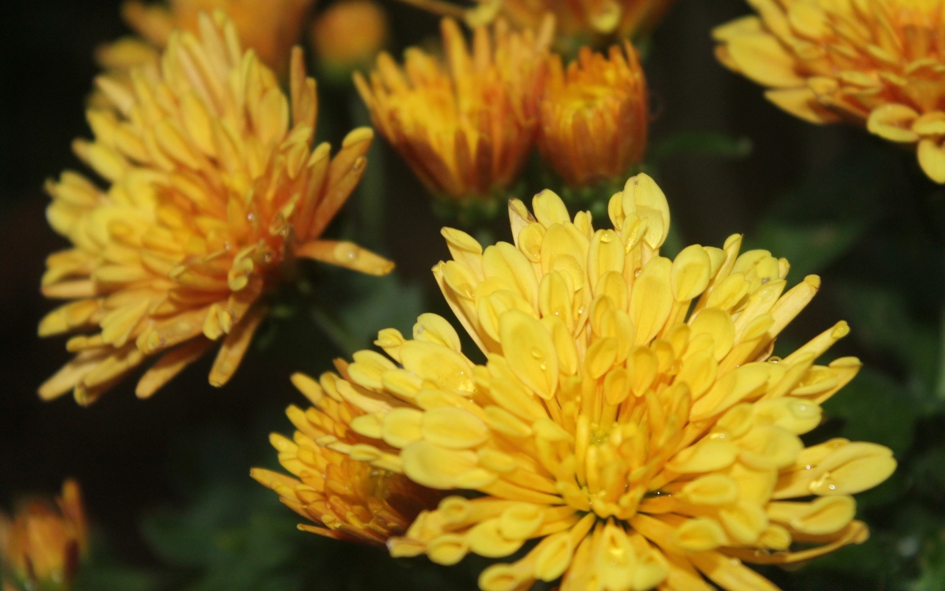 Оранжевые и синие Хризантемы с жёлтыми серединками